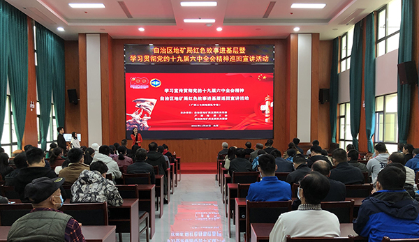 本网讯(陈俊贤 报道)2021年11月23日上午,由自治区地矿局直属机关党委、广西地质工会、自治区地矿局直属机关团委主办的“自治区地矿局红色故事进基层暨学习贯彻党的十九届六中全会精神巡回宣讲活动”在广西二七四地质队举行。