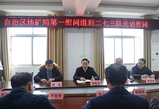 本网讯(苏世峰 报道)2022年1月26日,自治区地矿局党组书记、局长唐善茂来到广西壮族自治区二七三地质队看望慰问该队离退休老同志和在职在岗干部职工,在给他们提前送去新春佳节的温暖之余,通过拉家常、座谈会等形式,倾听他们的期盼和需求,并结合学习贯彻党的十九届六中全会精神和自治区第十二次党代会精神等,就局属公益一类事业单位如何提质增效提出,要锚定公益服务方向、积极履行公益职能,创造性开展工作。