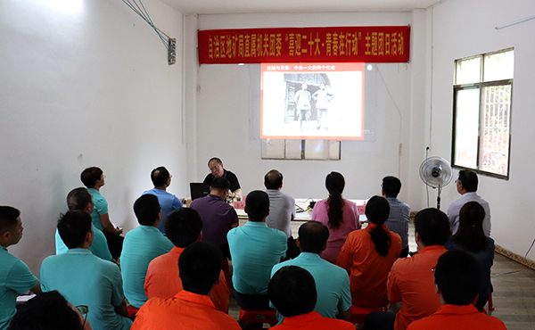 本网讯(特约通讯员黄彬彬 罗福余报道)“是那山谷的风,吹动了我们的红旗,是那狂暴的雨,洗刷了我们的帐篷······”,在激昂的《勘探队员之歌》歌声中,自治区地矿局直属机关团委(局团委)“喜迎二十大·青春在行动”主题团日活动正在三○七大队广西藤县金鸡盆地普查、金鸡盆地资源潜力评价项目开展。局二级巡视员漆同斌参加活动。