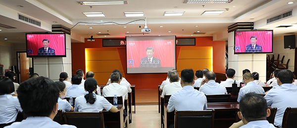局机关、驻科技楼单位集中收看党的二十大开幕会