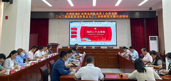 本网讯(张白雪 报道)2022年11月29日,自治区地矿局离退休处地质工会党支部与二七二地质队离退休党总支、工程物探党支部开展“学习二十大 奋进新征程”支部共建活动,地矿局二级巡视员、广西地质工会主席江坤树领学党的二十大精神。