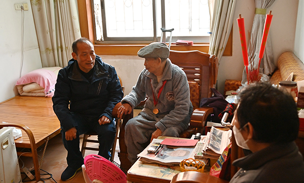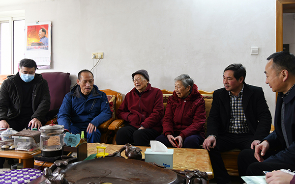 江坤树(左二)慰问水文队老党员顾中秀家中(吴绍强/摄)