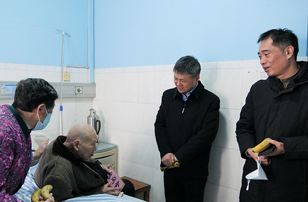 慰问组慰问了广西技术能手、广西五一劳动奖章获得者罗远红,并来到广西地质职工医院三一〇分院,看望慰问生病住院的离休干部陈大贤以及建国前参加革命工作的老工人刘龙,为他们送上慰问金和慰问品。黎四龙仔细询问了陈大贤的生活和健康状况,对老人多年来为地矿事业所作的贡献表示感谢,鼓励老人在新的一年里保持积极向上的生活状态,保重好身体。在看望慰问刘龙时,黎四龙仔细询问家属关于老人的住院陪护和医疗费用方面情况,叮嘱家属们让老人好好休息,一定要照顾好老人身体,有困难及时向党组织反映,组织将会继续加大关心力度,尽全力帮老人解决生活上的难题。