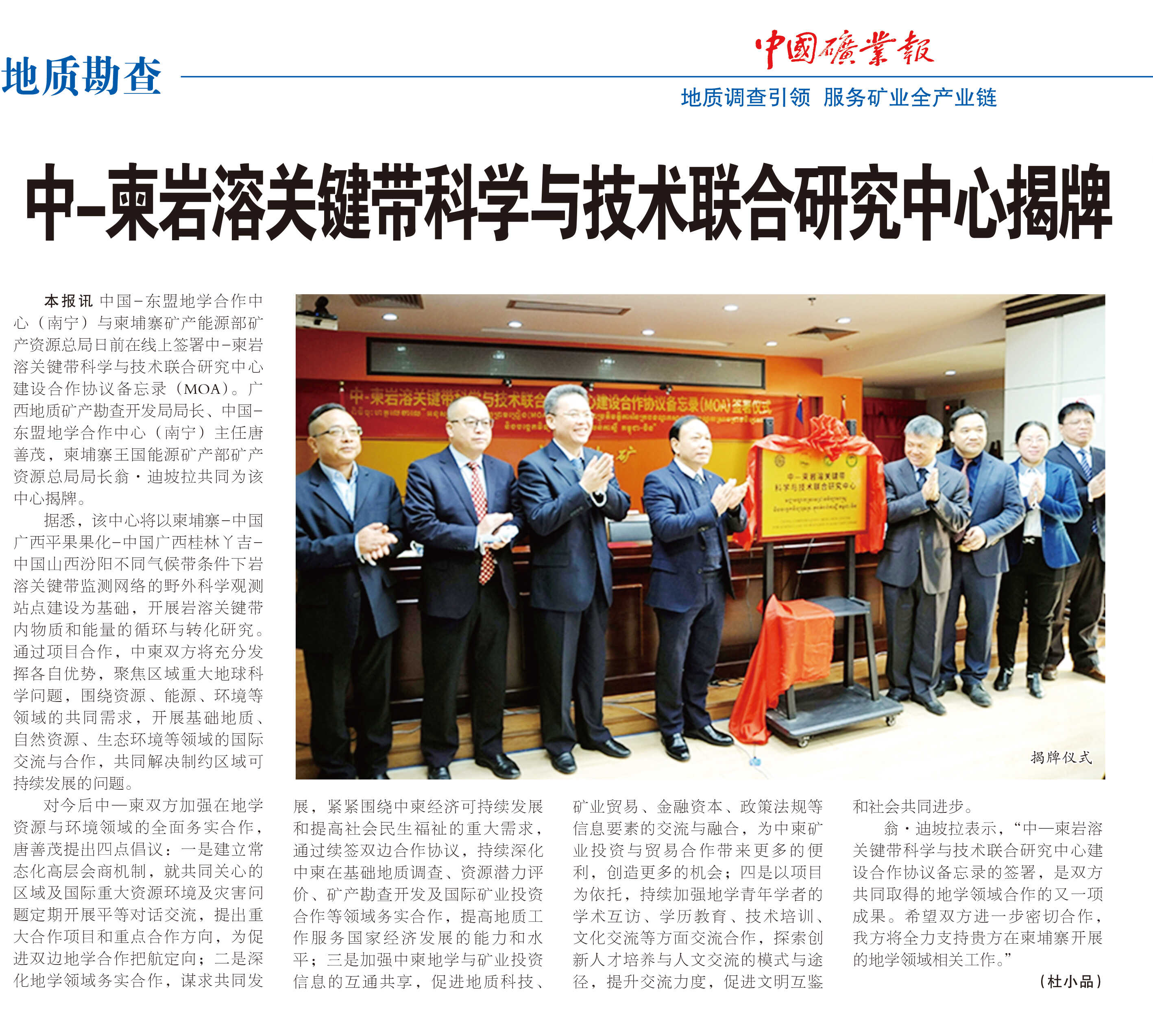 中国矿业报:中-柬岩溶关键带科学与技术联合研究中心揭牌