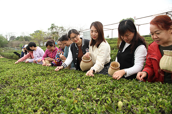活动中,女职工们背着竹篓,在茶园里欢声笑语。大家一边采茶,一边欣赏着无限春光。随后,在茶艺老师的指导下,大家开始体验炒茶制茶。带着亲手制作的茶叶,大家来到了品茶室,跟着茶礼老师一起学习泡茶。听着老师讲述中国源远流长的茶文化,大家品茶聊天,互相交流学习,凝心聚力,共同提升对美好生活的追求。