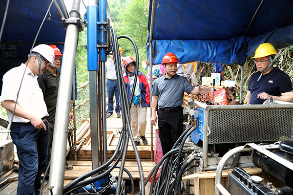唐善茂对各铝土矿勘查项目取得的成效表示肯定。他强调,要紧紧抓住全面启动实施新一轮找矿突破战略行动的有利契机,在确保安全和质量的前提下加快铝土矿勘查工作进度,适时优化各阶段施工组织方案,在已完成实物工作量基础上,进一步加快推进地表工程揭露、样品测试分析等工作进度,争取尽早取得铝土矿勘查成果。要聚焦新一轮找矿突破战略行动任务,锚定“找大矿、找好矿”目标,大力发扬不迷信权威、敢于质疑的精神,系统开展铝土矿重点成矿区带、矿集区成矿规律等方面的研究,总结提炼并构建铝土矿成矿规律和找矿模式,形成一批有分量的实践成果、理论成果,指导实现铝土矿找矿突破、增储上产,保障广西生态铝二次创业对矿产资源的需求。要充分发挥地质科技创新在找矿突破行动中的支撑和推动作用,积极发挥地质矿产专业人才“智库”作用,与区内外地勘单位、矿山企业、高等院校等开展协同攻关,研究探索铝土矿共、伴生稀有金属成矿特点,带动其他关键金属取得找矿突破。要大力培养和选拔任用长期工作在野外项目一线的优秀技术人才,多关心关爱基层地质队员,做好服务保障工作,帮助解除后顾之忧,为他们成长成才、开展工作创造良好条件,激励他们在新一轮找矿突破战略行动中再立新功。