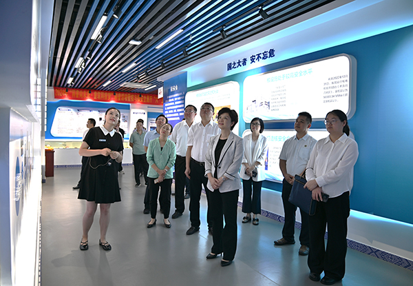 罗荣莉先后参观了三〇五大队竞赛荣誉墙、核与核安全展厅。在展厅内,罗荣莉仔细观看展出的图文介绍,认真聆听讲解员的讲解,对该队几十年来坚持为国找矿的光荣传统有了全面了解,肯定了该队在服务国家战略能源资源保障、核应急处置方面所作出的积极贡献,并对下一步如何发挥好核与核安全展厅科普教育基地作用提出了宝贵建议。