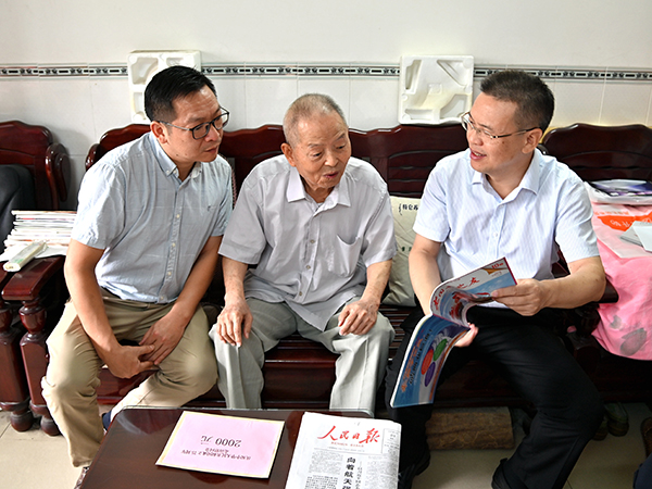 99岁离休干部贾福祥精神矍铄,言谈间流露出对往昔岁月的深情回忆和对当前美好生活的由衷感慨。徐初来亲切询问其身体状况、生活起居及家庭情况,高度赞扬了贾老为党和人民事业所做出的贡献,希望贾老继续关心支持广西地矿事业发展。在离休干部刘玉璋的家中,徐初来认真倾听刘老深情回忆为国家和广西地矿事业奋斗的峥嵘岁月,并鼓励他继续保持良好的心态,享受幸福的晚年生活。(编辑:常莎莎;校对:刘容辰;审核:苏世峰)