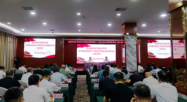 据悉,此次培训班邀请了自治区党委统战部常务副部长林怀勇、自治区党委宣传部意识形态巡视办主任李远远、广西大学马克思主义学院院长徐秦法、自治区纪委监委驻自然资源厅纪检监察组副组长何永安、自治区党校原副校长韦日平等领导、专家,就深入学习贯彻党的二十届三中全会精神扎实推进铸牢中华民族共同体意识示范区建设、意识形态工作能力培养、学思想引领新实践改革开放再出发、学纪知纪明纪守纪、树立新时代正确的政绩观等内容,对全局200多名处级干部开展了涵盖政治理论素养、党性修养、履职本领、廉洁奉公等方面开展培训,以发挥“关键少数”的领头雁作用推动地矿事业高质量发展。(编辑:张文浩;校对:常莎莎;审核:廖海燕)