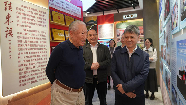 宋瑞祥(左一)参观自治区地矿局局史馆