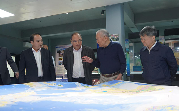 宋瑞祥深耕地矿领域六十余载,亲历我国地矿行政管理改革全过程,是地矿行业改革发展的重要推动者与见证者。调研期间,宋瑞祥一行先后参观了局史馆、地学科普标本展示馆,并到中国—东盟地学合作中心(南宁)考察。他听取了我局在基础地质调查、战略性矿产勘查、东盟地学数据库建设等领域的工作汇报,观看《中国—东盟矿业信息服务平台》东盟矿业信息地图、数字大屏等板块演示,重点询问了中国—东盟矿业合作大会举办、与东盟国家合作及境外工作开展情况。针对我局将数字化技术与地质工作深度融合,在地学合作方面取得的显著成效,宋瑞祥给予充分肯定。