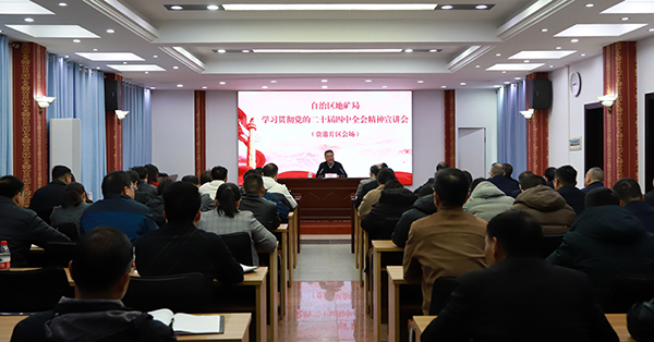 本网讯(罗福余 报道)2026年1月13日上午,自治区地矿局学习贯彻党的二十届四中全会精神宣讲会(贵港片区)在三○七大队召开,局党组成员、副局长徐初来为贵港片区地勘单位所有处级领导及中层干部代表作宣讲报告。