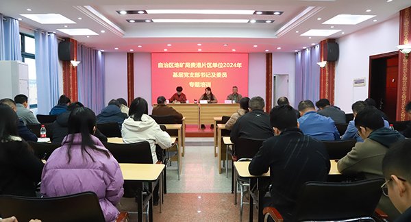 本网讯(罗福余 报道)2024年12月17日,自治区地矿局直属机关党委在广西壮族自治区三○七核地质大队举办贵港片基层党支部书记和委员专题培训。自治区地矿局直属机关党委有关负责人,贵港片3家单位基层党支部书记、委员及党务工作人员近50人参加培训。