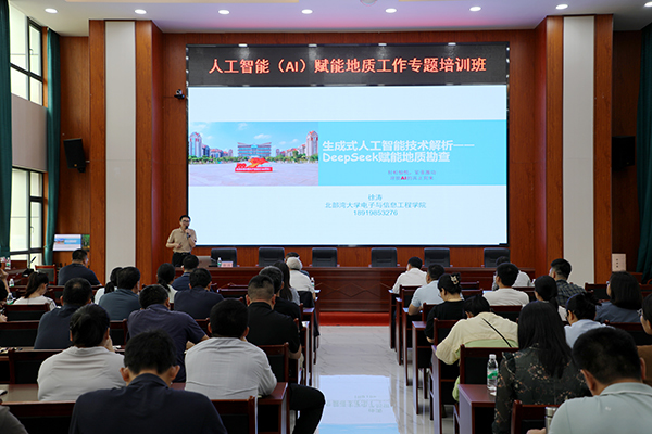 本次培训特别邀请到北部湾大学博士、副教授徐涛莅临授课,徐教授深入浅出地讲解了人工智能及DeepSeek的技术原理与发展历程,阐述了人工智能在现代生活和工作中的显著优势及广泛应用。他通过演示运用DeepSeek高效处理遥感影像的实际案例,详细解读了该技术在处理海量地质数据时的独特优势 —— 其强大的数据分析与挖掘能力,能够从地质、物探、化探、遥感等多维度的复杂数据中,精准识别潜在的地质特征和找矿信息,为地质勘查工作提供强有力的技术支撑,有力推动地质工作向智能化转型。