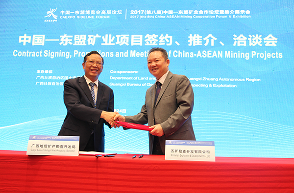 本网讯(苏超光 报道)2017年8月24日下午,中国-东盟矿业合作论坛矿业项目签约、推介、洽谈会在南宁会展中心举行,来自国内外的20多个合作单位当场签约了10个项目,签约总金额达53亿元。