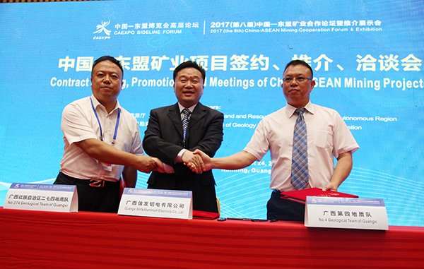 广西二七四地质队与广西信发铝电有限公司签订《广西靖西县渠洋矿区铝土矿探矿权转让意向协议》和《矿产资源地质勘查及开发战略合作协议》