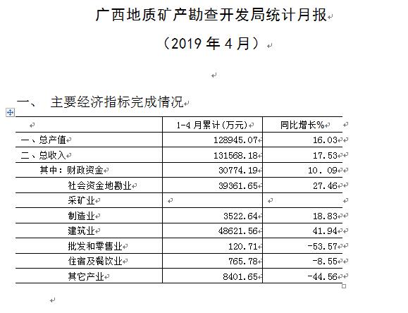 广西地质矿产勘查开发局统计月报 (2019年4月).docx