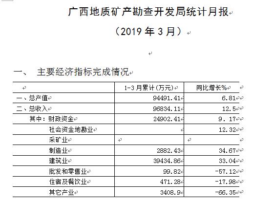 广西地质矿产勘查开发局统计月报(2019.3).docx