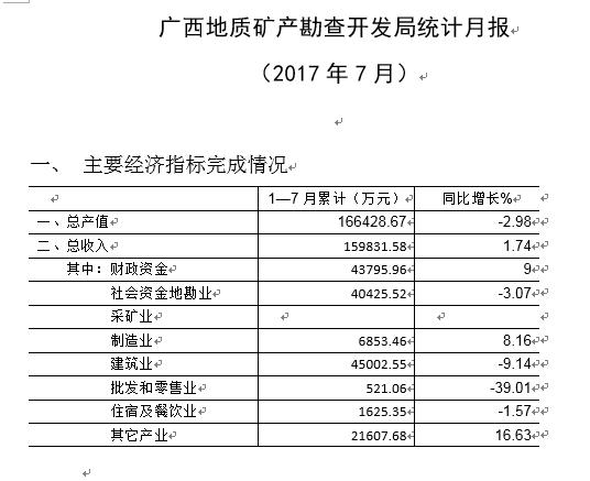 广西地质矿产勘查开发局统计月报 (2017年7月).docx